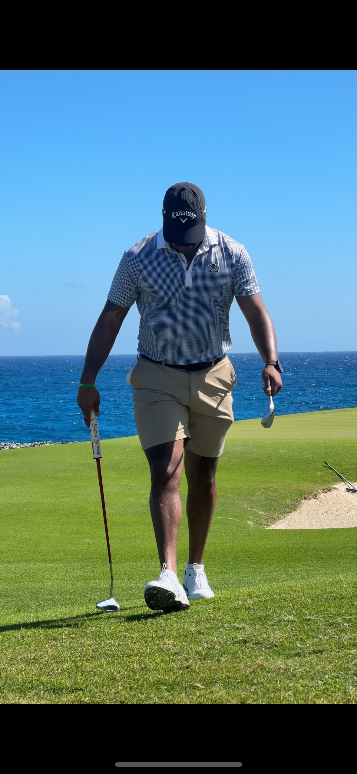 This 19th hole polo is the perfect material. It’s light and stretches. I can wear it in the Texas summer heat or over a long-sleeve spandex on a cooler day. The design is fun and exciting to sport any time of year.